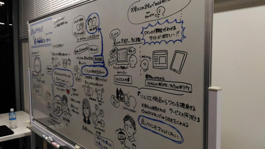 今日のご担当は、こうした通常のイベントだけでなく多数のグラフィックレコーディング勉強会でもご活躍中の小野奈津美さん。シンプルな絵と的確な構造化がされており、とてもわかりやすいです。